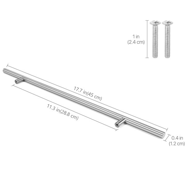 - 1x T Bar Handle Pull Knobs 18″ Length (11.3″ Hole Center) Hardware Set Stainless Steel Kitchen Door Cabinet Drawer Furniture Appliance Euro Style with Mounting Screws