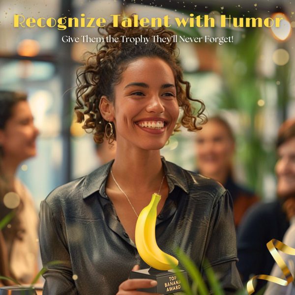 - Elegantly crafted, the radiant banana sculpture embodies excellence and stands proudly on any desk or shelf. It’s a versatile and suitable award for various occasions, be it in education, sports, or corporate environments.