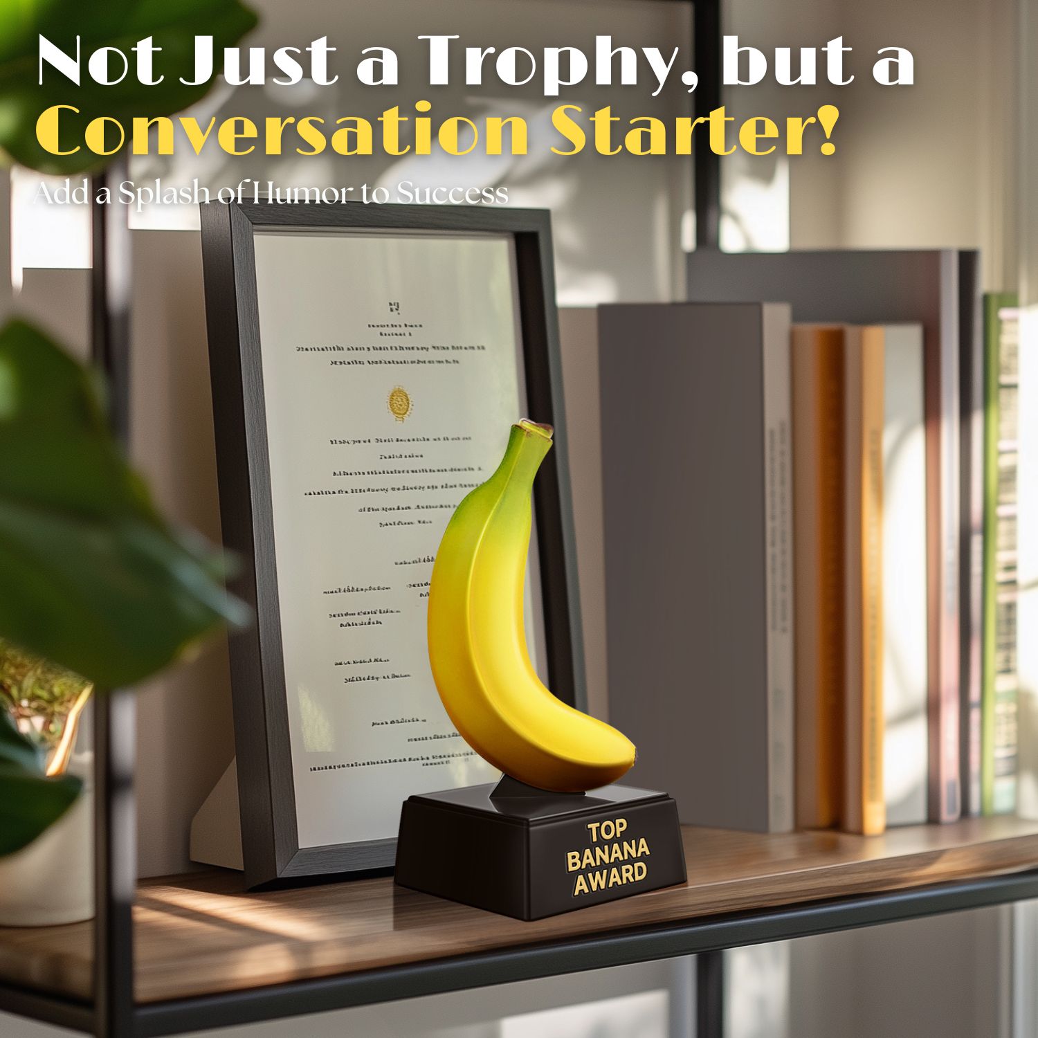 - With the Flexzion 7″ Banana Trophy, celebrate the extraordinary accomplishments of individuals in your life. Whether it’s a team player who has gone the extra mile or a professional standing out in their field, these funny awards serve as a unique and humorous way to show appreciation and recognition.